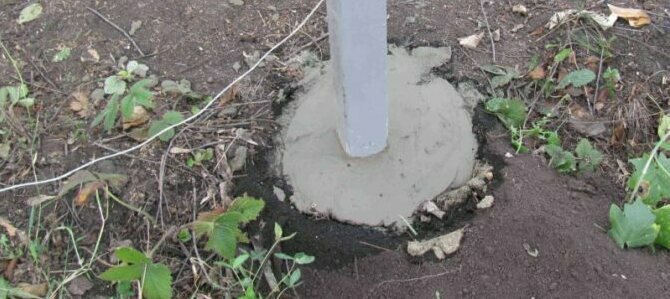 Бетонирование столбов является наиболее дорогим способом установки опор для забора.